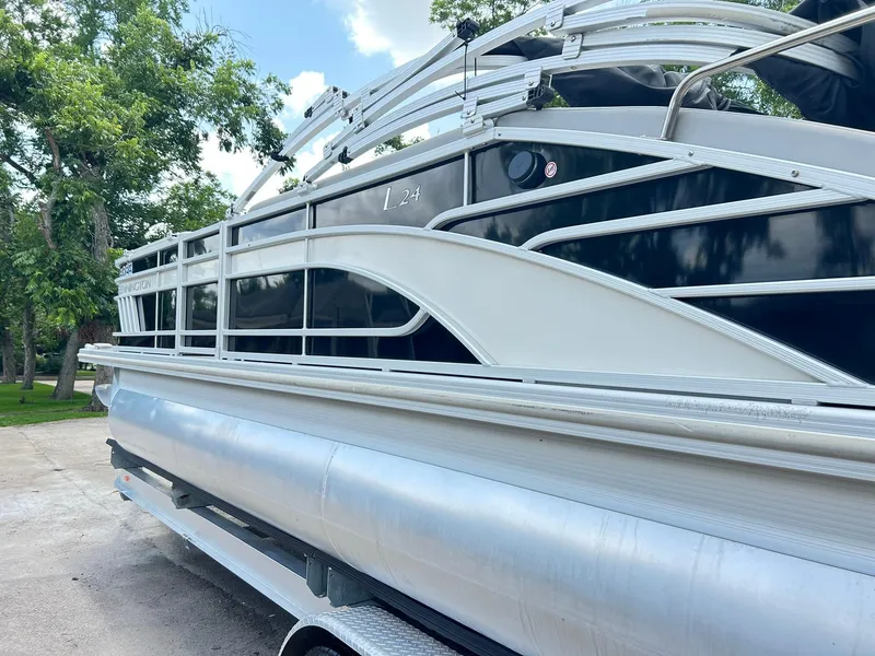 2024 Tri-Toon used very little on a small fresh water lake and always covered. The upholstery is perfect, and there is seating for the entire family plus some. The very LOW hours (only 125) on a Yamaha 200HP Four Stroke makes great power with her stainless steel prop. A nice Kicker stereo with Kicker speakers and Bluetooth technology makes it easy to share your music and sing along. Duel bimini tops provide a LOT of shade on those hot afternoons, and there's a nice swim ladder aft. A stainless steel ski tow makes it a blast to pull the kids or even get dad out there on the water. There is a Full cover included & she has LED docking lights. There are lots of extras as well...all the safety equipment of course, dock lines & fenders, two anchors, tow ropes for the toys, floties for relaxing in the water, and a stainless steel grill ($600 new) that's never been used.