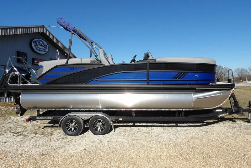 2026 Bennington 22 MFB powered by a Mercury 200 hp V6 4-stroke motor. This boat includes numerous features and options including: Met Luminous Blue and Gemini Black Exterior Color Combo, Blackout Luxe Package, SPS Tri-Toon Performance Package, Rough Water Package, Lifting Strakes, 34 Gallon Fuel Tank, Hydraulic Steering with Tilt, Full Underdeck Shielding, Black Rub Rail Insert, Battery Switch, Extended Aft Deck with the Lilli-Pad Ladder, In-Floor Storage, 7" Vivid Screen (Glass Dash), American Flag Kit, Chaise Convenience Table (includes trash can, built in table, and a dog food and water bowl), Shoreline Grey Flooring, Reclining Helm Seat, Windshield, Wireless Phone Charger, Rockford Fosgate Stereo with USB/ MP3 Port, Bluetooth Ready, 4 Rockford Fosgate Speakers, Console Glovebox, Docking Lights, Ski Tow Bar, Mooring Cover, Removable Table, 10' Curved Bimini Top w/ LED Lighting, LED lighted Gate Glides for the bow gate, aft gate, and the port side gate, Mercury SS Prop, and an Interstate starting battery.