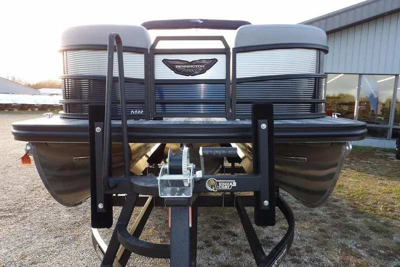 2026 Bennington 22 MSB powered by a Mercury 150 hp 4-stroke motor. This boat includes numerous features and options including: Absolute Red and Matte Black Exterior Color Combo, Blackout Luxe Package, SPS Tri-Toon Performance Package, Rough Water Package, Lifting Strakes, 34 Gallon Fuel Tank, Hydraulic Steering with Tilt, Full Underdeck Shielding, Black Rub Rail Insert, Battery Switch, Extended Aft Deck with the Lilli-Pad Ladder, In-Floor Storage, 7" Vivid Screen (Glass Dash), American Flag Kit, Chaise Convenience Table (includes trash can, built in table, and a dog food and water bowl), Shoreline Grey Flooring, Reclining Helm and Co-Helm Seat, Windshield, Wireless Phone Charger, Rockford Fosgate Stereo with USB/ MP3 Port, Bluetooth Ready, 4 Rockford Fosgate Speakers, Console Glovebox, Docking Lights, Ski Tow Bar, Mooring Cover, Removable Table, 10' Curved Bimini Top w/ LED Lighting, LED lighted Gate Glides for the bow gate, aft gate, and the port side gate, Mercury SS Prop, and an Interstate starting battery.