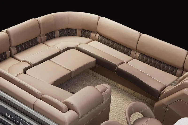 Features benches in the rear, port recliner midship, and benches up front. This Bennington R25 Quad Bench with Fastback has an approximate length overall of 27' 3".