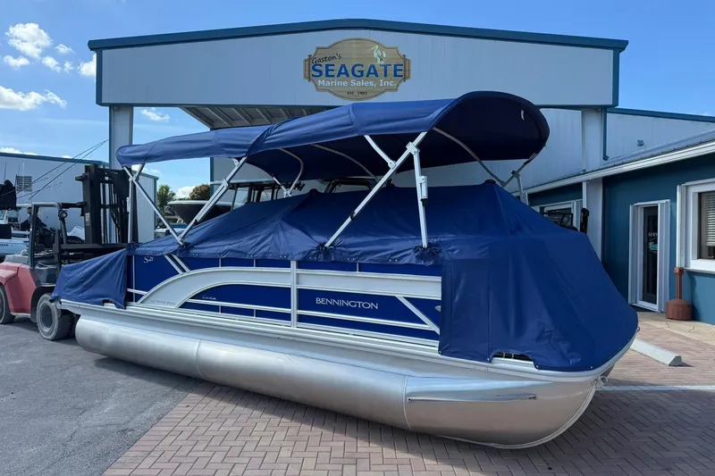 Brand new 2026 Bennington 21SL with S-Luxe trim. Bennington's S-Luxe package includes an upgraded dash, an upgraded fiberglass, gel coated console along with Veneto Soft-Touch Vinyl Furniture for a plush, upscale feel throughout the interior, and convenient built-in charging stations for phones and devices. The S-Luxe trim also opens the door to a variety of other options not offered on the standard S.