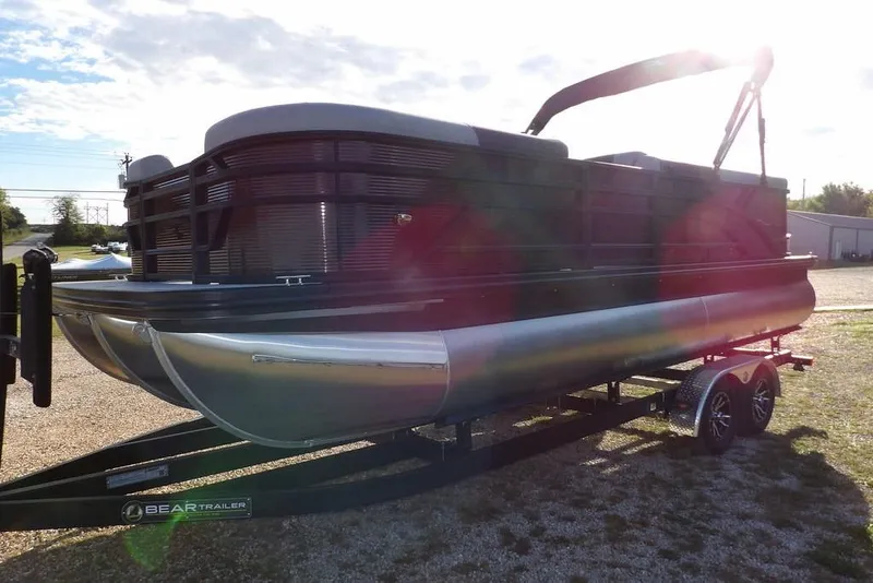 2026 Bennington 22 SL powered by a Mercury 150 hp 4-stroke motor. This boat includes numerous features and options including: Sunset Red Exterior Color (new color option for the 2026 model year), Blackout Luxe Package, Express Tri-Toon Package, Center Tube Lifting Strakes, 25 Gallon Fuel Tank, Hydraulic Steering with Tilt, Full Underdeck Shielding, Black Rub Rail Insert, Battery Switch, Shoreline Grey Flooring, Reclining Helm Seat, Rockford Fosgate Stereo with USB/ MP3 Port, Bluetooth Ready, 4 Rockford Fosgate Speakers, Console Glovebox, Docking Lights, Ski Tow Bar, Mooring Cover, Removable Table, 10' Bimini Top, 4 Step Rear Entry Ladder, LED lighted Gate Glides for the bow gate, aft gate, and the port side gate, Mercury SS Prop, and an Interstate starting battery.