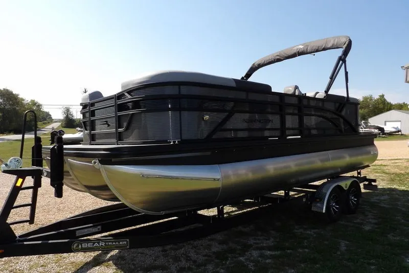 2026 Bennington 22 SSR powered by a Mercury 150 hp 4-stroke motor. This boat includes numerous features and options including: Anthracite and Gemini Black Exterior Color Combo, Blackout Luxe Package, SPS Tri-Toon Performance Package, Rough Water Package, Lifting Strakes, 34 Gallon Fuel Tank, Hydraulic Steering with Tilt, Full Underdeck Shielding, Black Rub Rail Insert, Battery Switch, Shoreline Grey Flooring, Reclining Helm Seat and Co-Helm Seat, Garmin Echomap 52CV Chartplotter Flush Mounted at the Console (includes depth and GPS), Windshield, Wireless Phone Charger, Rockford Fosgate Stereo with USB/ MP3 Port, Bluetooth Ready, 4 Rockford Fosgate Speakers, Console Glovebox, Docking Lights, Ski Tow Bar, Mooring Cover, Removable Table, 10' Bimini Top, 4 Step Rear Entry Ladder, LED lighted Gate Glides for the bow gate, aft gate, and the port side gate, Mercury SS Prop, and an Interstate starting battery.