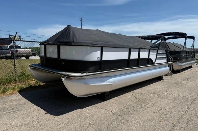 The 2023 Bentley 220 Swingback is a 22-foot luxury pontoon known for its versatile rear seating that can transform from a forward-facing bench to a rear-facing lounge or a large sun pad. Available in Legacy and Elite series, it is designed for both relaxation and water sports with a capacity of up to 15 people.