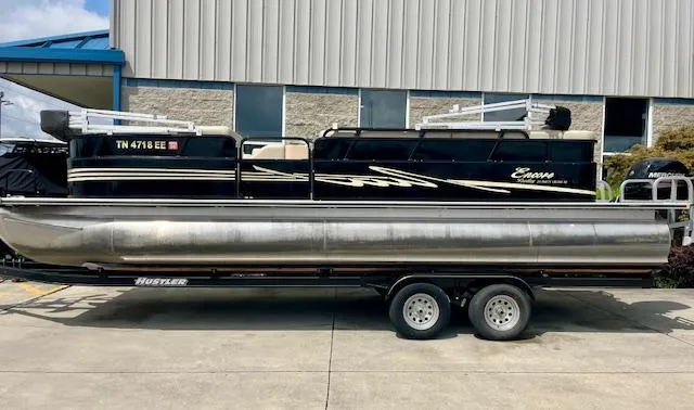 Just in, this comfortable and entertaining tri-toon is ready for the water! Mercury 150hp Four Stroke motor, depth finder, mooring cover, and double bimini top are just some of the great features of this boat. Hours: 442