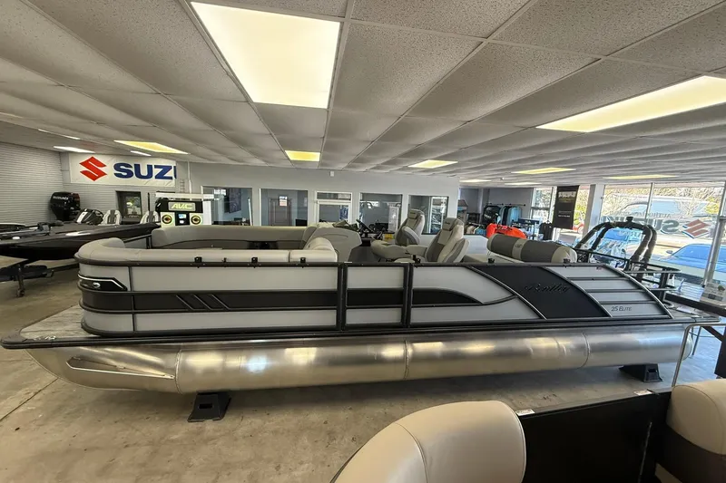 - Additional Amenities: Includes interior and exterior LED lighting w/ underwater lights, lakeport plank grey flooring, a double bimini top for extensive shade, blackout package, black Bentley decal package, ski locker in the center tube, a ski tow bar and full playpen cover.