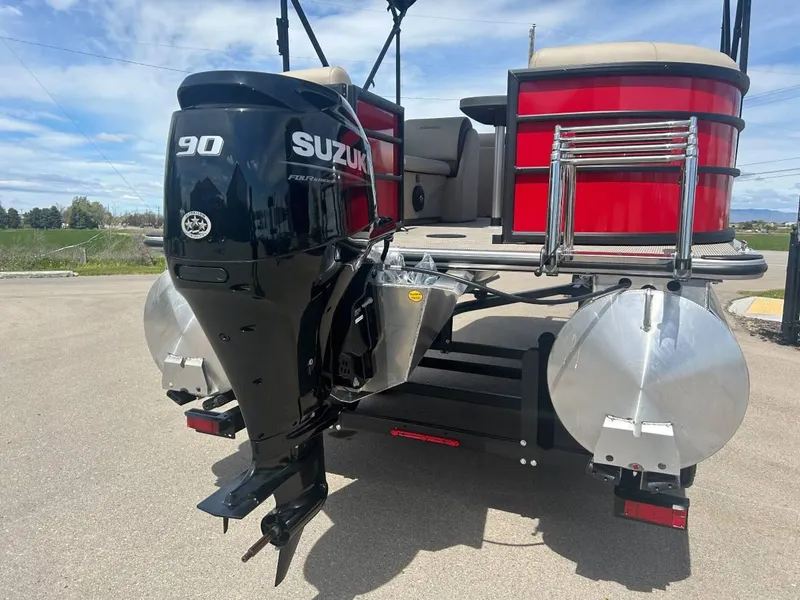 Pictured with a Suzuki 4-Stroke EFI DF90 which is included in the price of the pontoon