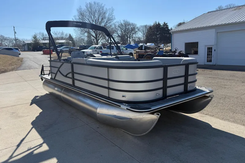This is a 2026 Bentley Legacy 200 Cruise XL that is powered by a Mercury 90 EFI 4 Stroke Command Thrust. This boat is Matte Silver with Black Rails and Bimini Frame, SE Grey Interior, and Lakeport Plank Gray Full Vinyl Flooring. We have our stock boat equipped with the following options: Humminbird Helix 5 GPS/Fishfinder at console, Black Ski Tow Bar, and Playpen Cover.