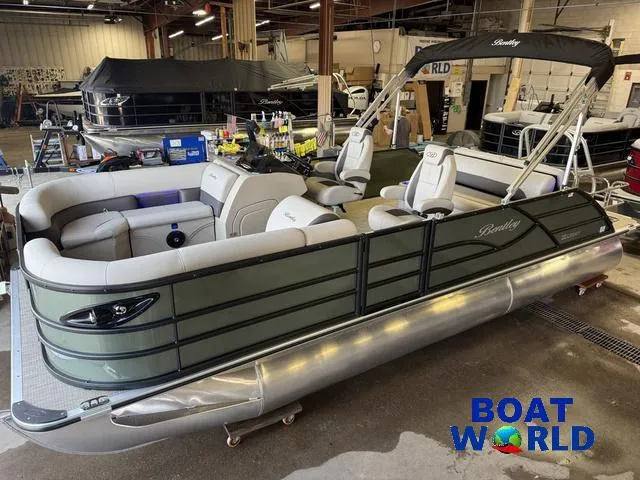 2025 Bentley Pontoons Legacy 220 Swingback & Honda 4-Stroke EFI, 2025 Bentley Legacy 220 Swingback Pontoon & Honda 4-Stroke EFI. This 22' Sage Green Swingback Has Front Chaise Lounge Seating With Storage, Two High-Back Reclining Captain's, Rear Swingback Rear Lounge (Multiple Positions) With Storage, Rear Safety Fencing, Interior Blue LED Package (Lighted Cup Holders & Courtesy Lights), Powder Coated Rails, Seagrass Vinyl Flooring, Livewell, Stainless Steel Flip Up Cleats, Humminbird Helix GPS & Depth Finder, Ski Tow Bar, Bluetooth Radio w/4 Speakers, Table, Built-In Table On Portside, Fiberglass Helm w/Storage, Playpen Cover, Tilt Steering, Rear Ladder, Battery On/Off Switch, Gauge Package w/Hour Meter, 25" Tubes, LED NAV Lights, LED Docking Lights, Built-In Trash Can, New Battery, Bimini Top Built-In 32 Gallon Gas Tank, Huge Front And Rear Deck. Rated For 15 People.