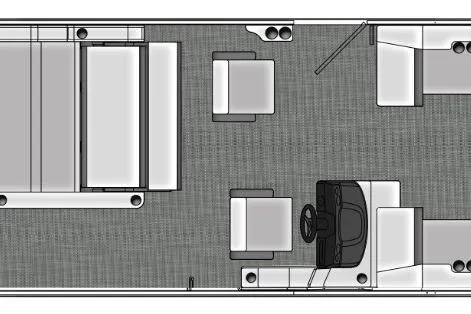 Dual captain high-back chairs, extended rear deck, center walk-thru layout - ideal for both relaxing and entertaining.
