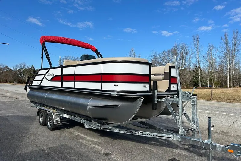 2026 Bentley Legacy Swingback 223 (SPORT3) TritoonThis White and Red Legacy Swingback 223 (SPORT3) Tritoon has a SUZUKI DF140BTLW5 outboard motor.