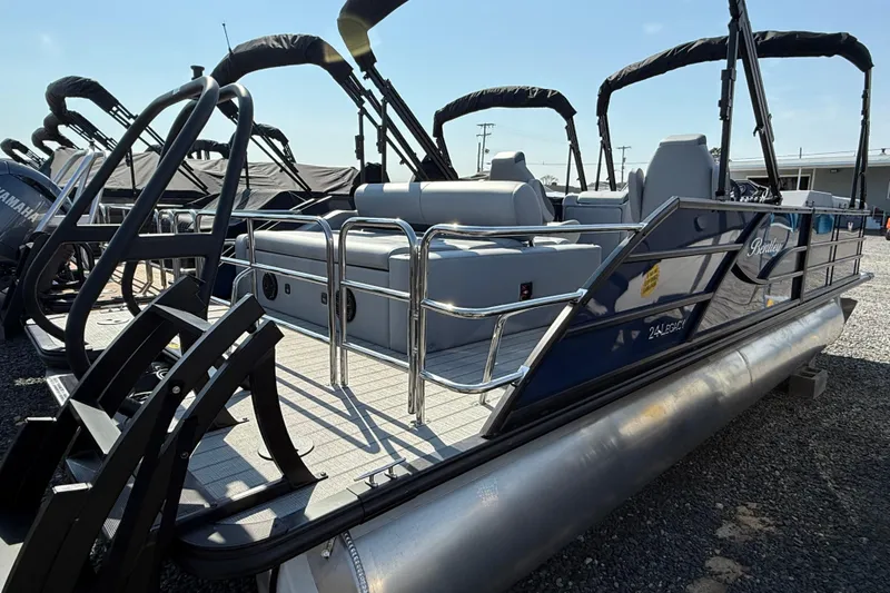 Just in! 2026 Bentley Legacy 243 Swing back in Indigo / Matte Black Powered by Yamaha F150! Model: 2026- Legacy 243 Swingback Motor: F150LD Rai lOptions: Blackout Package -(Black Bimini Frame & Black Anodized Rub Rail) Rail Options: Coastal Series (Black): Black Anodized Rails, SS Fasteners. 2x Saltwater Anodes. Logo Panel Options: Indigo Accent Color: Matte Black Furniture Options: Changing Room Option-Installed in Chaise End Furniture Options: High Back Captain's Chair- 2 Furniture Options: SE Gray Interior Flooring Options: Slate Teak-Gray W/ Black Bimini Options: Double Bimini- Black Anodized Bimini Skin Options: Black Bimini Skin Cover Options: Furniture Covers - Black -Installed Cover Options: No Playpen Cover Pre- Gauges: Yamaha Digital Amenities: Installed Battery Cables Amenities: Lillipad Ladder Upgrade Console Options: Simrad NSX 7 (GPS & Depth Functions Only) Console Options: Under Helm Cooler Slide (Cooler Not Included) Lighting Options: Exterior BlueLED Package-Rear Underwater Lights & Underdeck Lights Lighting Options: Int. Blue LED Package -Lighted Cup Holders & Courtesy Lights