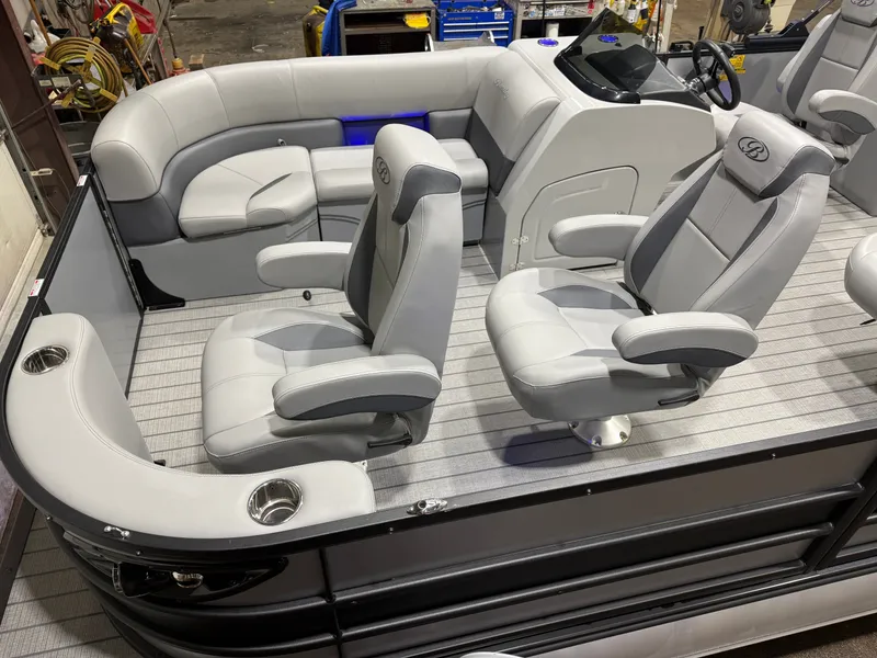 2026 Bentley Legacy 223 Navigator DL Quad Lounge Tritoon Pontoon & Honda 4-Stroke EFI. This 22' Matte Silver/Matte Black Walls Tri-Toon Has Starboard Front Chaise Lounge Seating With Storage, Portside Side By Side High Back Reclining Seats w/Cup Holders, Rear Chaise Lounge Seating W/Storage, Side By Side High-Back Reclining Captain's Seats, Interior Blue LED Package (Lighted Cup Holders & Courtesy Lights), Exterior Blue Lights (Rear Underwater Lights & Under Deck Lights), Blackout Package (Black Bimini, Black Anodized Rub Rail), Powder Coated Rails, Stainless Steel Flip Up Cleats, Simrad 7 GPS & Depth Finder, Black Ski Tow Bar, Rockford Bluetooth Radio w/6 Speakers, AMP & 10" Sub, Table, Fiberglass Helm w/Storage, Slate Teak Vinyl Flooring, Playpen Cover, Power Assist Steering, 6 Lifting Strakes, Underneath Sheeting, Rear Ladder, Ski Locker In Center Tube, Windshield, Built-In Cooler, Honda Digital Gauge Package w/ Hour Meter, 25" Tubes, LED NAV Lights, LED Docking Lights, New Battery, 10' Bimini Top, Built-In 54 Gallon Gas Tank, Rear Deck. Rated For 15 People! Bentley's CEO's Demo With 52 Hours On The Motor Honda 250HP 4-Stroke EFI - $59,995 Full 5 Year Bentley Warranty 5 Year Non-Declining Warranty With Honda Trailer Is Not Included In Sale Price But Available For Use Or Purchase. Don't Be Fooled With Additional Fees @ Closing. Our Price, Plus Tax & License, Includes Freight, Rigging, Battery, Prop, Ect.... Call For More Details - Stock #7164 Financing Available OAC Call Boat World @ 763-434-9655 All Factory Rebates For Pontoon And Motor Are Included In Sale Price For More Information And To See Many More New Pontoons Visit www.boatworldmn.com