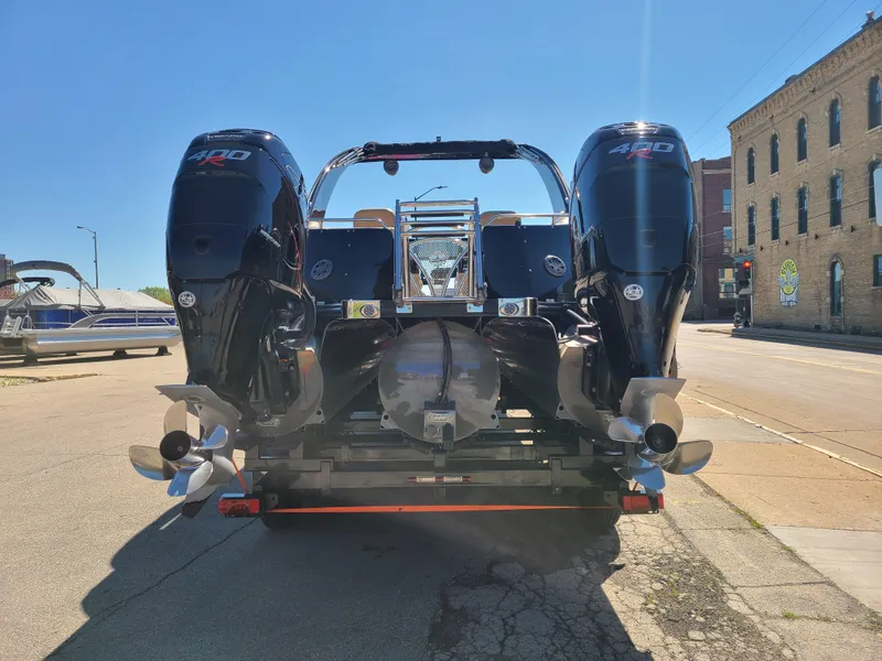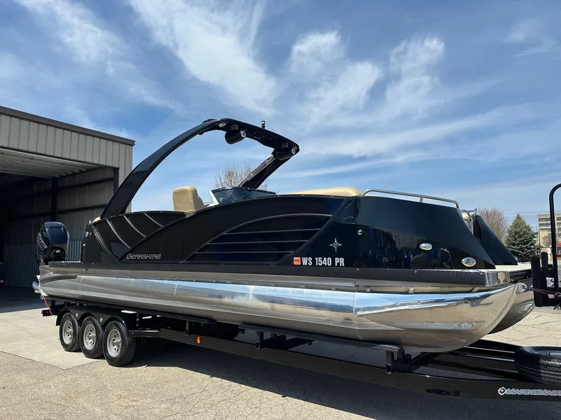 PRICE REDUDED! Freshly buffed and wax, looks beautiful! This 2018 Berkshire 25 Sport RFX9 DC is Metallic black in color. Boat has tons of great options. Lets start with a completely digital dash, upgraded stereo with 14 JL Audio speakers in the boat including 2 JL Audio can speakers hanging from the arch, electric fold down arch, camera facing backward to video skiers or tubers, in-floor storage, On-board cooler, garbage can cabinet and LED Galore. This boat also has complete custom camper canvas to overnight on it if you wish. $12K upgrade. Boat is powered by twin Mercury Racing 400R's with 491 hours on them. Motors also have active trim. Boat also comes with a 2023 Tri-Axle bunk trailer. This boat is a head turner, local boat always in fresh water.