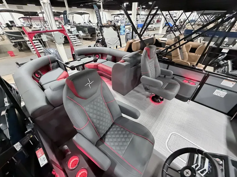 INDUSTRY EXCLUSIVE 100% ONE PIECE COMPOSITE DECK - 30% LIGHTER THAN INDUSTRY STANDARD WOOD DECKS-Combine Luxury & Sport with Berkshire Pontoons--LIGHTER-STRONGER-FASTER-BETTER!!TRAILER AND/OR LAKE DELIVERY AVAILABLE - PLEASE CALL FOR INDIVIDUAL QUOTEPowered by Yamaha 200 EFI 4-Stroke, 3.0 Tritoon Package, Hydraulic Steering, Underskin Liner, Lifting Strakes, 37 gal Fuel Tank, Yamaha SS Reliance Prop, Saltwater Package, Lowrance 7' Elite GPS/Navigation, Custom Mooring Cover, Electric Power Bimini Top, RGB Interior Lights (Floor, Table, Seat Base, Ambient Seat, Cupholders), HD Folding Table, Sport Ski Tow Bar, Blackout Package, In Floor Storage, Lippert Pad Ladder