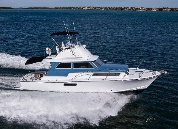 When you enter the yacht from the cockpit you will first notice the new custom-made entry door. Also, you will also note the modern stairs to the flybridge. This is your first hint that this is a unique custom boat. When you enter the saloon, you think you're on a much newer model European designed yacht. The interior combination of light and dark wood finishes gives this a light and modern feel. With the flat screen TV and custom sofa to the updated new galley and refrigeration systems to include a wine cooler. This will allow you to stay onboard for weeks and have all creature comforts. There is an upper and lower bunk state room on the port side and across the hall in a very large head with sink and vanity and very ample stand up with a seat enclosed shower. The raised trunk forward cabin allows great head room. You have an island queen berth forward for separation of guest and owners. This is a perfect boat for a couple or a family.
