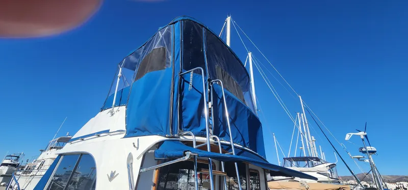 - Fully Enclosed Flybridge Enclosure: The full enclosure offers shade and protection from the sun and wind, making the flybridge a comfortable place to relax, even on hot days.