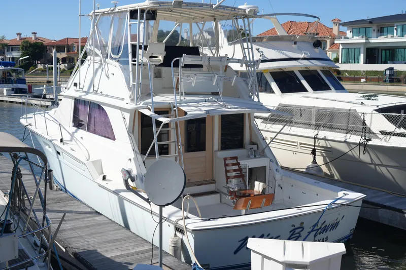 Introducing the stunning 1977 Bertram 46.6, a classic convertible boat that combines timeless design with robust performance. With an overall length of 46.4 feet, this vessel is perfect for both leisurely cruising and adventurous outings. The hull is crafted from durable fiberglass, ensuring longevity and resilience on the water. Powered by twin Detroit Diesel 8V92 engines, each delivering an impressive 435 horsepower, the Miss B Havin promises exhilarating speed and reliability. With only 3,217 and 3,205 hours of use, these engines are ready for many more journeys. Accommodations include two well-appointed cabins and two heads, providing ample space for relaxation and comfort. The thoughtful design and features make this boat an ideal choice for those seeking both style and functionality. Experience the joy of boating with the Miss B Havin, where every detail is crafted for an unforgettable experience on the water.