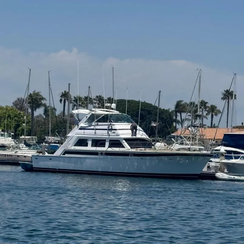 Introducing the impressive 1981 Bertram 58 Flybridge Motor Yacht, a remarkable vessel that combines elegance and performance. With an overall length of 58.25 feet, this yacht boasts a robust fiberglass hull designed in a Deep Vee shape, ensuring stability and a smooth ride on the water. Powered by twin 850 hp Detroit Diesel 12V71TI engines, this yacht delivers a cruising speed of 20 mph and can reach a maximum hull speed of 27 mph, making it perfect for both leisurely cruising and spirited adventures. With a remarkable range of 2000 miles, the Knot Excatly is ideal for extended voyages. Accommodations include three well-appointed cabins and three heads, providing ample space for relaxation and comfort. This motor yacht is a true blend of luxury and functionality, making it an excellent choice for those seeking an unforgettable experience on the water.