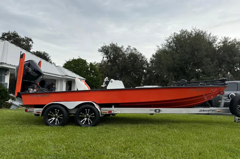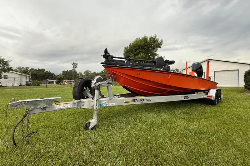 Livorsi LED navigation lights + LED anchor light (mounted on Power-Pole bracket) Electronics, Audio and Fishing featuresGarmin Echo 14" chartplotter with side scan transducerGarmin Force 36V trolling motor (foot pedal + remote)Three AGM trolling motor batteries with onboard chargerSingle house batteryJL Audio 6.5" speakers (x2) with ampFusion Bluetooth head unitTwin 8' Power-Pole BladesDual livewells (forward + rear) with bubblers, pumps, and high-speed pickupsRod buckle straps on bow deck (port + starboard)Port and starboard rod lockers - hold up to 7 rods each, up to 11' in lengthBuilt-in insulated coolerLED cockpit lighting and bright white LED compartment lighting Storage & Deck LayoutThree forward dry storage compartments with two aft dry storage compartmentsFlush-mounted stainless steel pop-up cleats (bow + stern) Trailer2021 AmeraTrail aluminum tandem axle trailer with aluminum wheels + LED lightingFulton two-speed winchFulton jack with wheel
