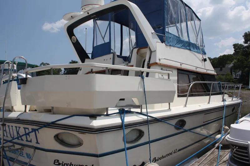 The Birchwood 42 Empress Motoryacht is an impressive vessel. Built in England, these boats are known for their quality. PHUKET's owners have owned her for over 20 years and have taken good care of her. She has four cabins including a forward cabin with centerline double berth and ensuite head and an aft cabin featuring a centerline double berth, ensuite head, and separate shower stall. She is out of the water (won't be launching this season) and may be easily viewed. PHUKET has a diesel generator and dual zone air conditioning. Owners are selling for health reasons.