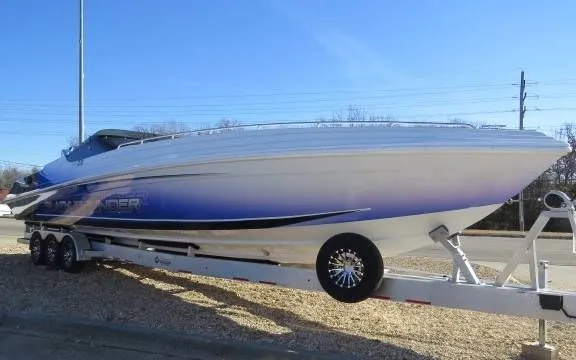 2022 Black Thunder Powerboats 43 EC Raised Deck, Description Introducing the sleek, powerful and irresistible 2022 Black Thunder 43 Extended Cockpit Raised Deck . This masterfully designed and meticulously engineered boat is a testament to superior craftmanship and groundbreaking performance. Power and Performance ( only 39.8 hours ) At the heart of this vessel, you will find Twin Mercury Racing 520 motors ensuring top-notch performance and thrilling speed. These engines are made to provide unparalleled performance, ensuring a smooth and exhilarating ride each time you set sail. Included Extra Features The 2022 Black Thunder 43 not only guarantees a strong performance but also comes with numerous additional options enhancing its value and user experience. The additional features include: Bow Thruster: For easier maneuvering and docking. Mercury Vessel View: For real-time information about your boat's performance. Underwater Lighting Package: For an enchanting visual spectacle in evening trips. Custom Audio System: For an immersive audio experience during your offshore adventures. Custom Exterior Graphics: Showcase your unique personality and style with the boat's aesthetics. Custom fit Trailer Also included in the price, to give you the utmost convenience, is a custom-fit Manning Aluminum triple axles trailer with brakes and a front boarding ladder. This heavy-duty trailer is perfect to haul your boat to and from the water, ensuring safety and easy transportation. This boat will crush big water in style.
