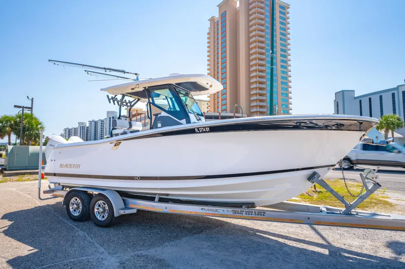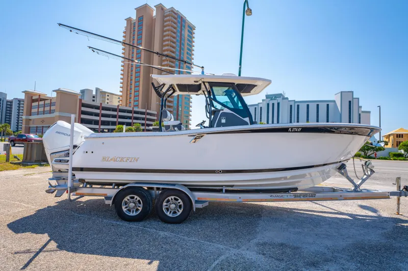 2021 Blackfin 272CC powered by twin Mercury 300 Verado's with Skyhook Joystick and only 388 hours since new! Includes Magic Tilt aluminum tandem axle trailer.