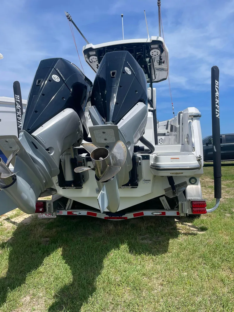 Immaculate, very well maintained boat ready for immediate delivery. Only 157 hours on the Mercury 300's, recent service and warranty through January 2027. Options include dual Garmin 12" touch screen, radar, gemlux outriggers, a custom Amer-Trail trailer, and more.