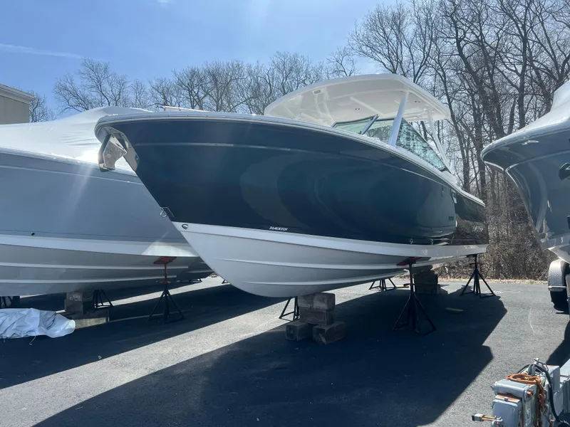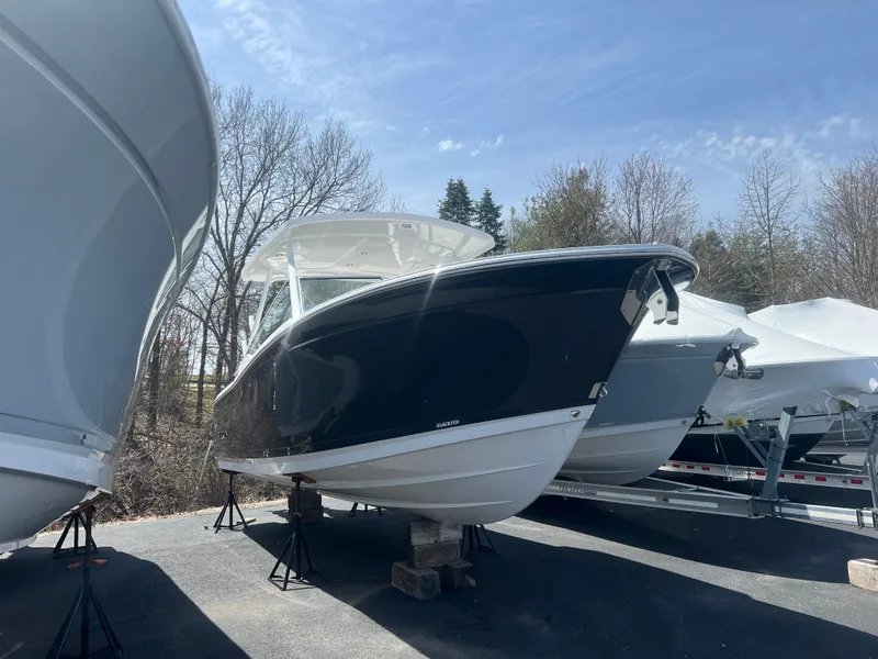 Hull and deckACT (Advanced Carbon Fiber Technology) - Hull Laminate Aft Hawse Pipes with Tie-off cleats, Stainless Steel (2) Anchor Windlass w/ SS Anchor and Through Hull Roller Hardware Barrier Coat, Vinylester Black Rub Rail, Heavy Duty w/Stainless Steel Insert Bow & Stern Eyes, Stainless Steel, w/SS Backing Plate Bow Block Off Door Cleats, Pull Up Stainless Steel (6) Closed Cell, High Density Structural Foam Floatation CMT (Closed Mold Technology) - Finished Fiberglass Hatches CRT ( Core Rigid Technology) - Molded composite Stringer grid Door, Walk-Thru at Transom Drain Plug, Brass Garboard Fiberglass Hardtop System w/Powder-Coated Aluminum Framework (White) Rod Holders (4), LED Overhead Lighting (Red/White) (4) & LED Spreader Lights (3) Finished Fiberglass Bilge and Storage Compartments Horn, Electric Flush Mount Lifetime Limited Hull Warranty Lights, Navigation NMMA Certified Storage, Anchor w/Fiberglass Hatch (Drains Overboard) Swim Ladder, Telescoping & Recessed, Stern w/Fiberglass Hatch Swim Platform, Integral Thru Hulls, Stainless Steel Above Waterline Transhield Cover Windshield, Tempered Glass with Walk Through Door Anchor Rode Upgrade (All Chain in Lieu of Rope & Chain)
