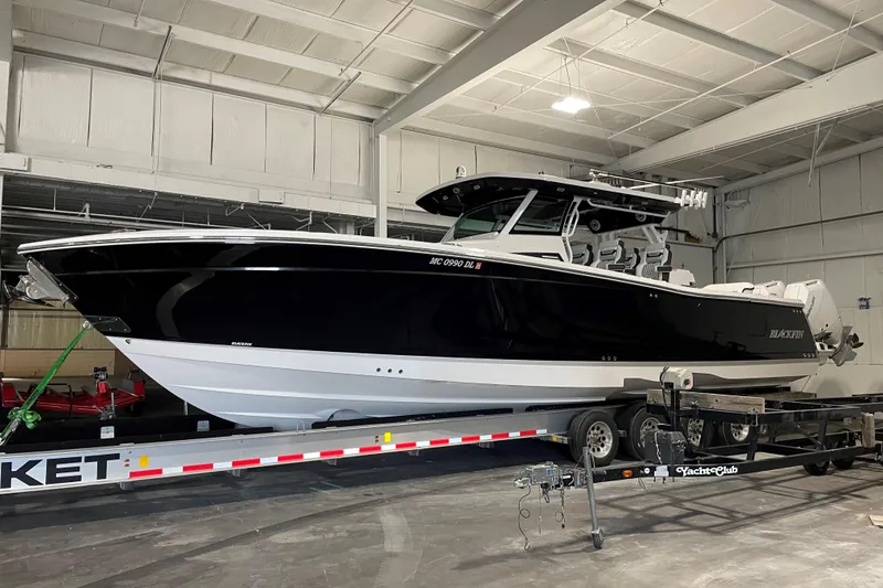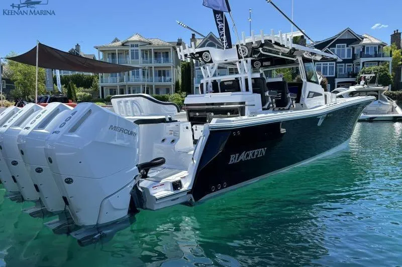 2025 Blackfin 40CC powered by 4 Mercury 400 v-10s with Joystick piloting, Mercury VesselView control, two rows of bolster seats, dive door, auto trim tabs, 2 20" Garmins chartsplotters, Flir night vision, two outriggers, rocket launchers with 14 rod holders, role holder throughout gunnels and aft seat, aft bait well, Garmin VHF radio, JLaudio upgraded sound, cabin and cockpit air, windlass anchor, cockpit stove top and sink, dedicated storage for two yeti coolers, dive door ladder,side entry ladder on platform, full berth with galley, berth and full head, cabin ac/heat