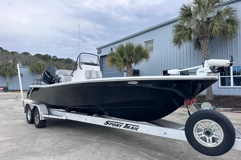 The BlackJack 224 represents the ultimate blend of prowess and performance, all wrapped together in a sleek and striking design from legendary boat builders Bill and Gary Kenner. From the smooth, dry ride of the "Carolina flare" bow to its classic "tumblehome" transom, the BlackJack 224 blends tradition and technology like no other boat on the market. Her hand-laid hull and deck are heavy-duty but lightweight. Reverse-angle, spray-reduction chines deflect the water with authority. Ability to purchase with brand new, 0/hr engine for additional cost.