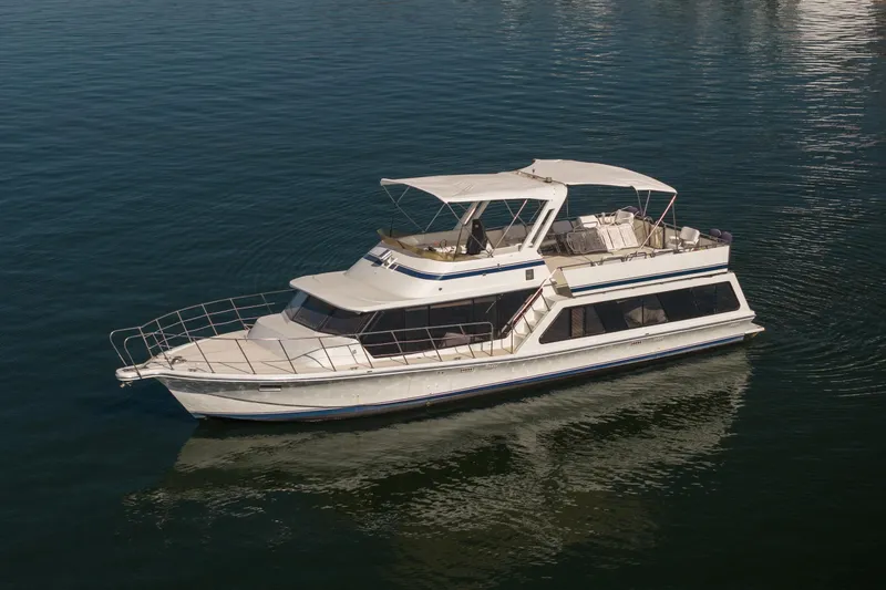 This 1984 Bluewater 51 Coastal is set up like a condo on the water, featuring 2 bedrooms / 2 bathrooms, dual A/C systems, and a built-in generator so you can stay comfortable no matter where you're anchored.