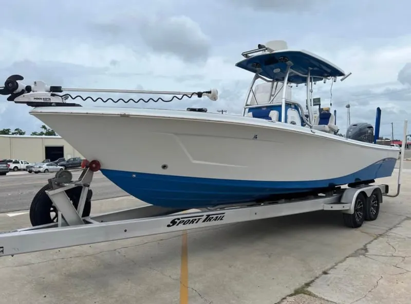 This 28' boat is rigged up with a little bit of everything. It is equipped with a Yamaha 5.6L V8 425hp engine. Engine has about 700hrs on it. Boat has Dual Lowrance monitors, Dual power poles, Minn Kotta trolling motor and more!
