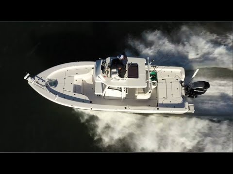 Meet 2800 Pure Hybrid, the worlds largest bay boat, it is just as comfortable fishing the shallows as fishing blue water. The unique hull design of 2800 Pure Hybrid delivers a soft and comfortable ride with enough Carolina flare to stay dry in most conditions. The double-stepped hull gets on top of the waves immediately for peak fuel economy and nimble performance. The boas impressive size assures space for everything you need for a day of fishing or fun in the sun. Fishing is at the forefront of this boats purpose-built design. One standard pressurized live well aft holding 35 gallons of live bait and a te10 gallon pitch well forward, are standard. An additional seventy-five gallons of live well is an option. Spacious platforms with insulated fish boxes and lockable rod storage all drain overboard and keep the deck dry. The console is large enough for twin 1 screens at the helm and a spacious step-down compartment has ample room for a porta-potti and rigging access. A comfortable jump seat and optional seat cushions for the bow turn this fishing machine into a sandbar champ. And to top it of you can easily filler up thanks to fuel fills port and starboard. The transom is Kevlar reinforced to accommodate up to 600 hp in a single or twin set-up. Truly, no species is safe.