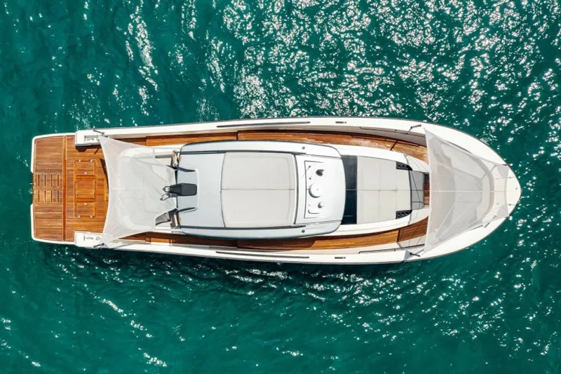 There is a $15,000 Wireless Yacht Controller that allows you to operate the vessel from anywhere you desire and you can add the joystick feature that incorporates the bow and stern thruster and engines to allow to spin on a dime for a nominal cost. There is a GHS Hydraulic swim platform with remote control, satellite TV, and everything has been maintained to ''like new'' condition from the day she was launched.