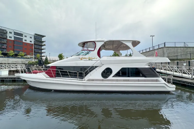 Powered by Twin Crusader 454's, it has an overall length of 52', Beam Height of 14'6". Entertaining is made easy with plenty of seating on all levels, along with a wet bar and built in grill on the upper deck to enjoy with your company. This is truly a must see.
