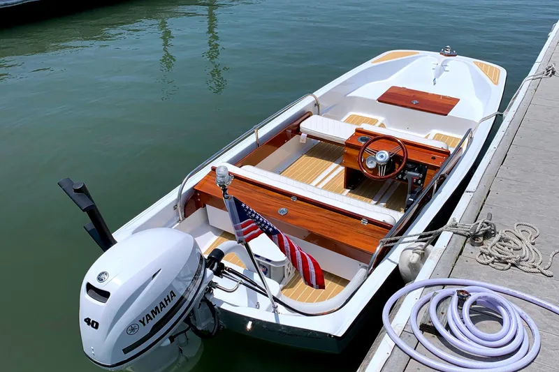 Classic 13' Boston Whaler, a stunning example of antique craftsmanship from 1981. This charming vessel, crafted from durable fiberglass, features a flat hull shape that ensures stability and ease of handling on the water. With an overall length of approximately 13.4 feet, it is perfectly sized for leisurely outings or fishing trips. The Boston Whaler is renowned for its versatility and reliability, making it a favorite among boating enthusiasts. Its timeless design captures the essence of classic boating and offers a comfortable experience for passengers. Whether you're navigating calm lakes or coastal waters, this used model promises a delightful ride. With its enduring appeal and robust construction, the Classic 13' Boston Whaler is an excellent choice for those seeking a blend of nostalgia and performance on the water.