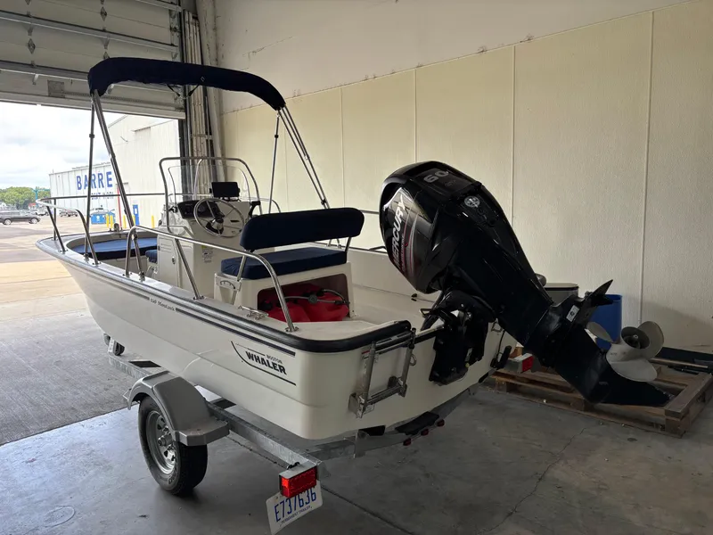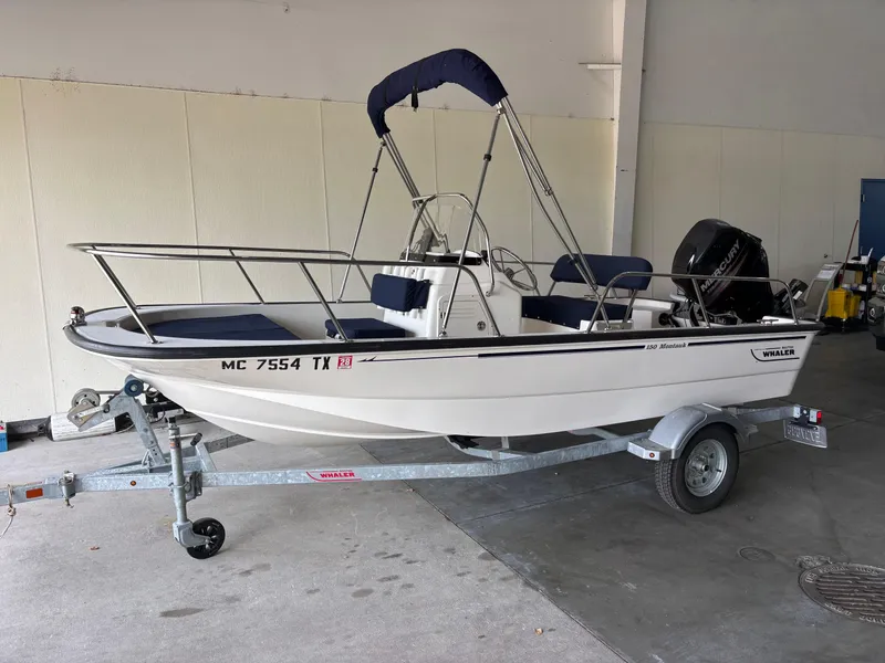 Boston Whaler's heritage is evident in the classic 150 Montauk, a model renowned for its dependability, no-nonsense design, and efficient, turnkey operation that consistently delivers. A standard 60-hp FourStroke Mercury engine and an open center console layout make the 150 a highly capable boat for both fishing and watersports. Its shallow draft and low freeboard put you close to your prey, and high wraparound railings and a high swamped capacity ensure superior safety. Add to all of this easy cleanup and a standard trailer, and the 150 Montauk is a true standout in reliability and convenience. This Whaler 150 features a Garmin GPS/Fishfinder, Custom Canvas covers, and seat covers, along with a Bimini Top and a trailer.