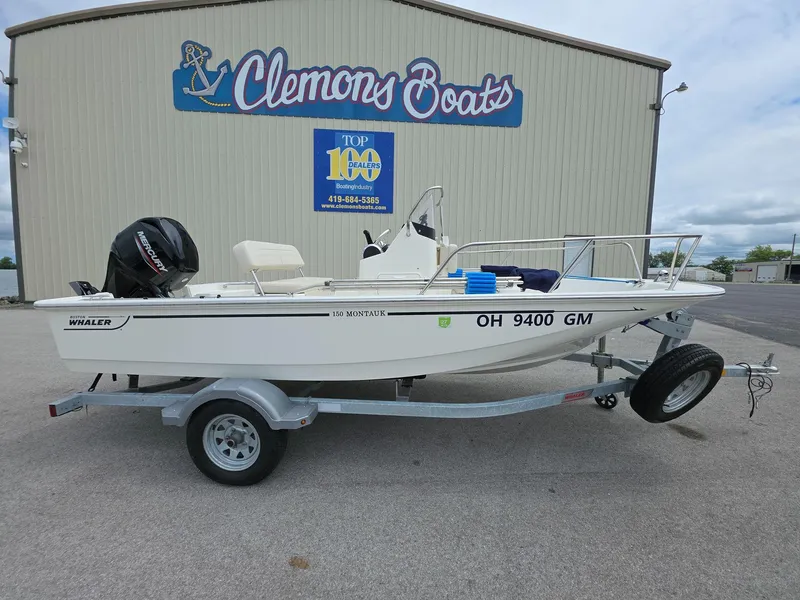 Available now at Clemons Boats, this 2024 Boston Whaler 150 Montauk is a pristine, freshwater-only center console that's ready for fishing, watersports, or leisurely cruising. With only one season of use on Ohio's inland lakes, this boat is in like-new condition and packed with features that make it a standout choice for both novice and experienced boaters.