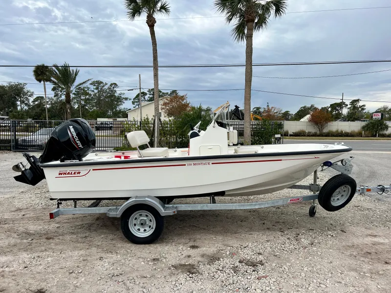 Boston Whaler's 150 Montauk® reflects 60 years of heritage, combining time-tested utility and classic lines with modern comfort, design and technology. Incredibly easy to operate, easy to clean, and easy to love, the 150 Montauk excels for both fishing and watersports. A spacious center console layout maximizes every inch of its nimble size, while Whaler's precision-engineered hull ensures a soft, smooth ride.