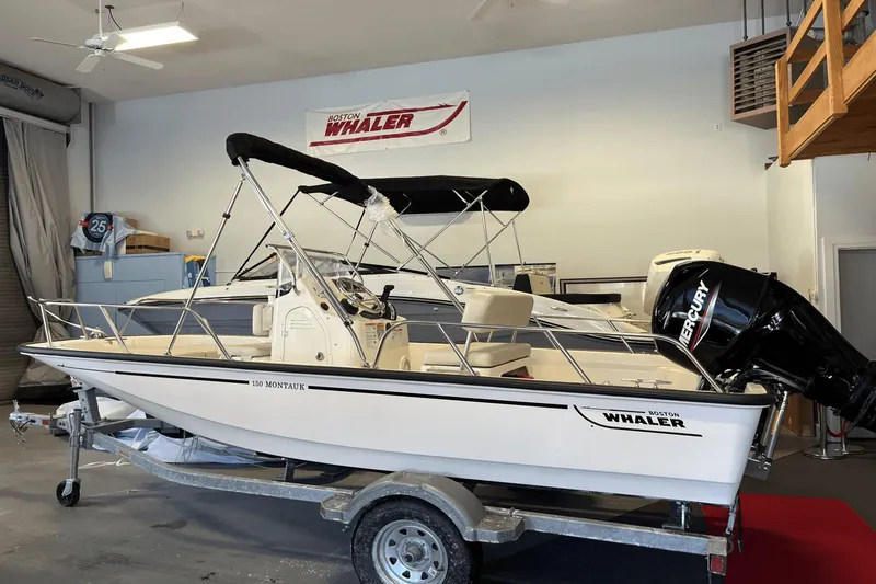 The 2025 Boston Whaler 150 Montauk, a true icon in the world of boating. Designed to withstand the test of time, this versatile vessel is perfect for both seasoned boaters and first-time adventurers. Crafted with uncompromising attention to detail, the 150 Montauk boasts sleek lines and a sturdy construction that will leave others in awe. Powered by a potent outboard engine, it offers exceptional performance and a smooth, efficient ride, whether you're cruising along the coastline or exploring hidden coves. With its spacious layout, this boat ensures maximum comfort and flexibility. The ample seating provides room for up to six people, making it ideal for a memorable day out on the water with family and friends. The storage compartments allow you to bring all your essentials and gear, ensuring a stress-free experience. Equipped with advanced technology and safety features, the 2025 150 Montauk guarantees peace of mind during every excursion. From the intuitive console controls to the reliable navigation system, everything is tailored to enhance your boating experience. Unleash your sense of adventure with the 2025 Boston Whaler 150 Montauk and experience the ultimate boating luxury blended with timeless design.