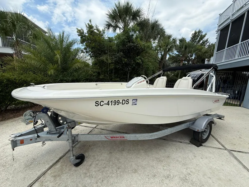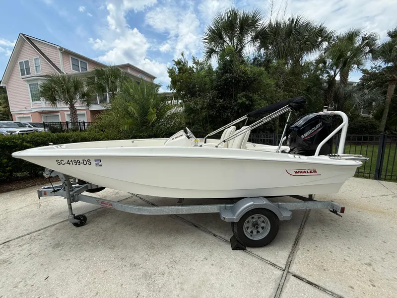 Durable Construction: Built with Boston Whaler’s legendary unsinkable hull design, providing peace of mind and safety on the water. 2. Versatility: Ideal for a variety of activities including fishing, cruising, watersports, and family outings thanks to its spacious layout. 3. Compact Size: At 16 feet, it’s easy to trailer, launch, and maneuver, perfect for day trips and smaller bodies of water. 4. Fuel Efficiency: Equipped with an efficient outboard motor option that balances power and fuel economy. 5. Comfort Features: Includes comfortable seating, ample storage compartments, and sun protection options like a Bimini top. 6. Easy Maintenance: Simple design and high-quality materials make cleaning and upkeep straightforward. 7. Good Handling: Responsive steering and stable ride even in choppy conditions, suitable for beginners and experienced boaters alike.