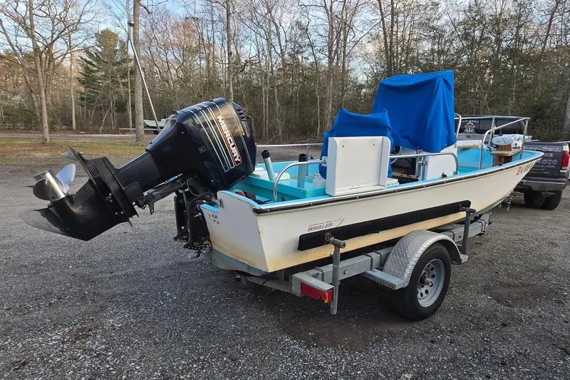here is a great lloking boston whaler with a great running 90hp 1993 mercury outboard 2 stroke engine. it is on a newer trailer as well. it has the following; electric windlass with mushroom anchor, trolling motor, garmin, gps, vhf radio, depth sounder fish finder, 3 batteries, with 2 batt switches, spotlight, rod holders, custom console with canvas cover, 2 fuel tanks, canvas cover for the helm seat as well. it is very obvious when looking at this boat, that it was well cared for. it is believed that this boat spent most of its life in fresh water too.