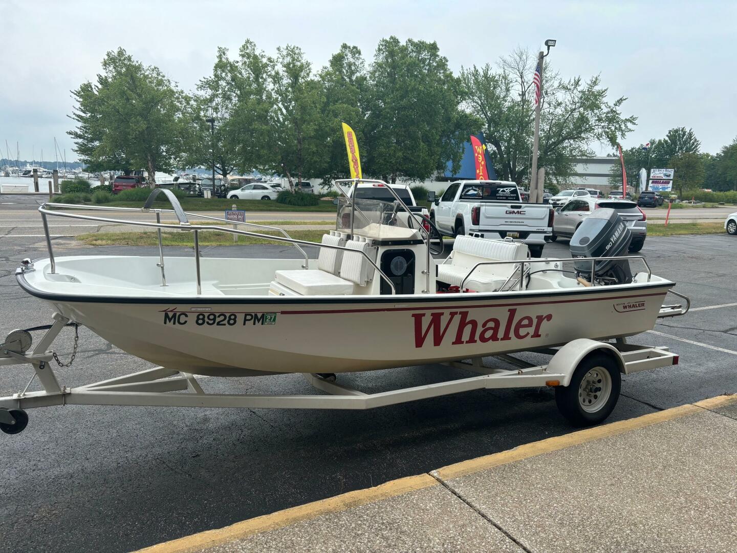 Possibly one of the most recognizable boats that Boston Whaler has ever made, the 17 Montauk enjoys an almost cult-like following and great resale. This is an affordable way to get out and play this summer! This 17 Montauk is a two-owner boat that is in average condition for her age, there are a couple of cosmetic bumps and bruises but overall in nice shape with everything in good working order and maintained. it has a 90hp Yamaha, full cover and a trailer that appears in nice condition as well. This boat should sell fast so if you're interested, give us a call or email for all the details.