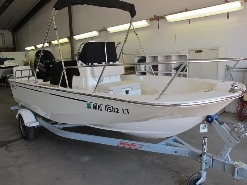 Like new with only 9.7 actual hours! Classic heritage meets cutting-edge capability in the 170 Montauk. This nimble center console model retains its clean, timeless aesthetic and rugged "hose-and-go" utility while providing enhanced comfort, performance and versatility. Count on all the features you need to get the job done, and the impeccable quality you know to expect from Boston Whaler - and fall in love all over again with the 170 Montauk.