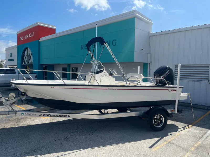 The 2022 Boston Whaler 170 Montauk is a remarkable center console boat that combines style and functionality. With an overall length of ~17 feet, this boat is expertly crafted from durable fiberglass, featuring a modified Vee hull shape that ensures smooth navigation and stability on the water. Powered by a 90hp Mercury outboard engine, this boat is designed for exhilarating performance and reliability. This used boat is an excellent choice for both leisurely outings and adventurous excursions. The 170 Montauk is equipped with essential features that elevate your boating experience. Its thoughtful design includes ample space for movement and enjoyment, making it perfect for family outings or fishing trips. This used model is in excellent condition, promising years of enjoyment on the water. Experience the thrill of boating with the Boston Whaler 170 Montauk, where quality meets adventure.