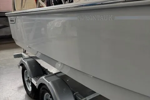 CLOSEOUT new 2025 190 Montauk! Powered with optional 150Hp Mercury EFI 4 Stroke/Stainless steel propeller. Equipped with the following factory options; galvanized trailer with spare tire, chrome graphics on a platinum gelcoat hull, combo reversible seat/console canvas cover, fishing package, fore and aft seating, live well, stereo, sun top, tow arch for water sports, trolling motor panel and white rub rail with stainless insert. $2500 Boston Whaler Promotion Rebate now in effect for all in stock 19 Montauks. Take this amount off any boats in stock. Call for final price.