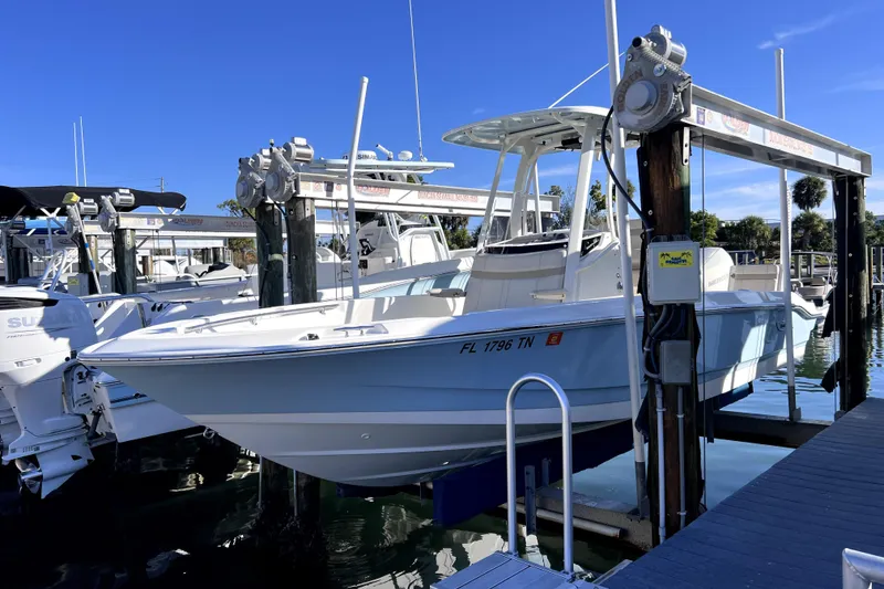 This 220 Dauntless built by Boston Whaler has been touted as one of the most versatile fishing and family-friendly boats in its class. Powered by an upgraded Mercury 250hp outboard (WARRANTY 5/26), you will be sure to get out to your destination and back with speed and reliability. This boat has been lift-kept and professionally serviced by Marine Max service department. With LESS THAN 50 HOURS, the sellers of this Dauntless have spent more time cleaning this boat than they have on the water and it shows!