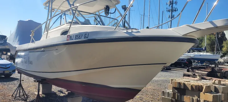 Classic Boston Whaler Fishing boat with an original 1999 Mercury 2 stroke 225 and a small 9.9 HP Johnson Sea Tracker kicker motor. The Total hours are unknown. Cruises at 25 kts and 40 wide open. There is125 gal fuel tank. Smail but roomy cabin with Porta Potty makes her capable for an overnight or to store your things between use. Owner wants her sold ASAP. No Trailer included but Jersey Cape yacht sales is a Venture Trailer Dealer and can offer the buyer a discount on a new trailer with the purchase of this or any boat we are offering.