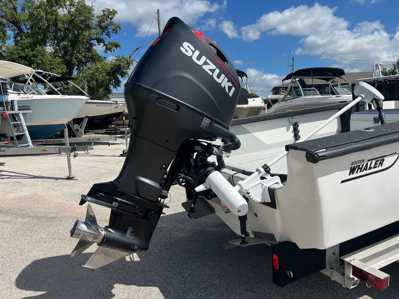 1989 Boston Whaler 23 Guardian with a 2019 Suzuki 200hp 4-Stroke E.F.I., Hyd Steering, Hyd Jack Plate, Trim Tabs, Rod Storage, LED Lights, VHF, GPS/ Fish Finder with HD Transducer, 24V Trolling Motor, Custom Leaning Posts, and On-Board Charger. Dual Batteries with Switch, 2 Coolers, New Engine Rigging (2018) and more!! This boat had a New Transom installed in 2024; and, has been reinforced to handle the weight and torque from the new 4-stroke engine. This boat includes a 2013 Aluminum Tandem Axle Trailer that's ready for your next trip or adventure for just 19,999.